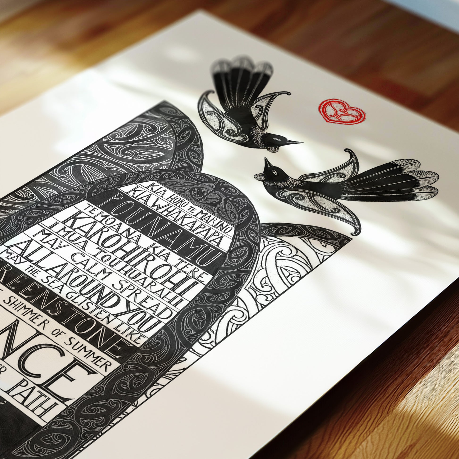 'Thank you so much for the art work and for going above and beyond to ensure it arrived in time. The art arrived safely and beautifully packaged. The personal note was much appreciated. Our colleague loves it and the whakatauki perfectly matches this occasion. Your art is even more beautiful in real life'