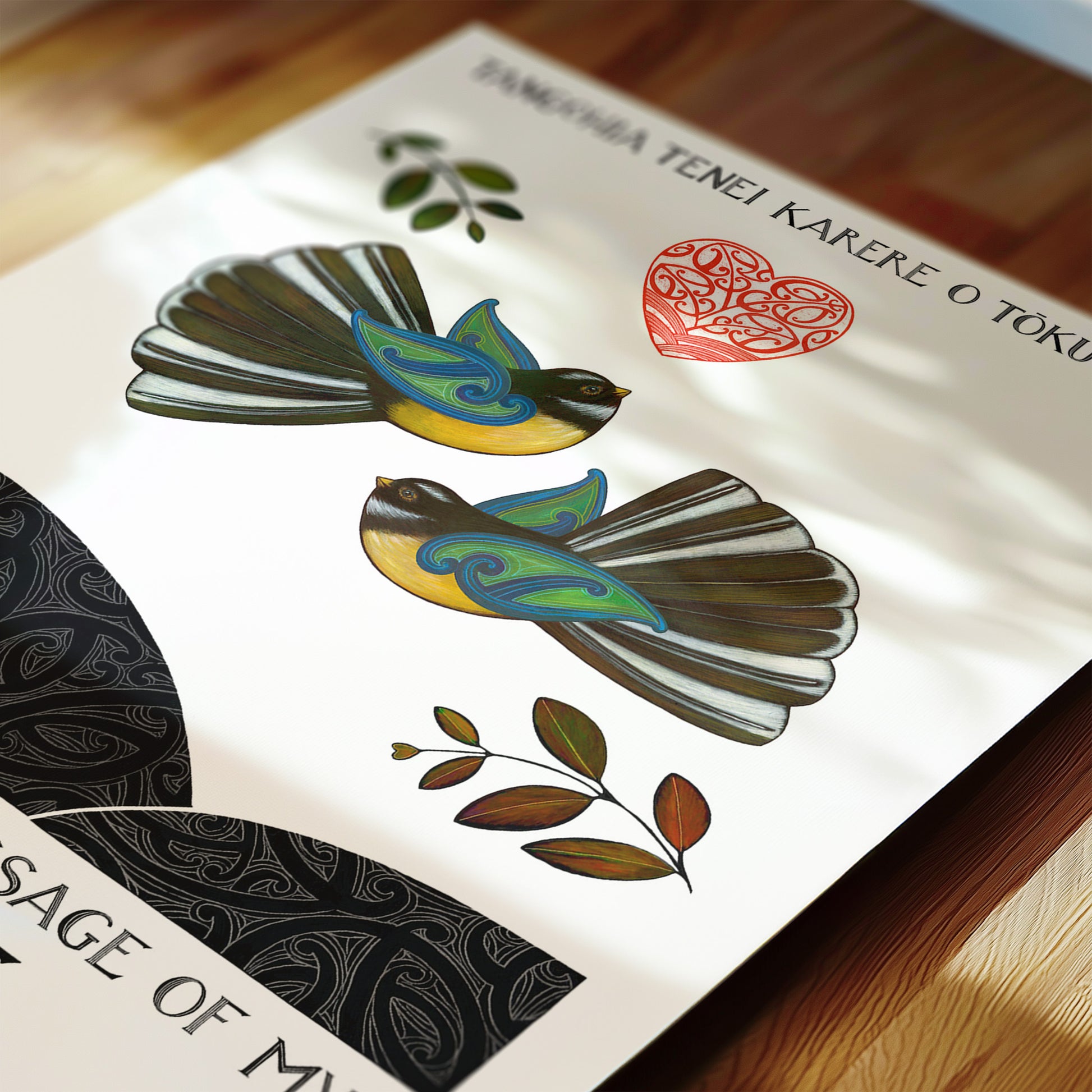 In te ao Māori, pīwakawaka (fantails) are often seen as messengers between realms - quick, lively, and full of spirit, they carry words and feelings from one heart to another. A reminder that love can travel across any distance and still reach the one it’s meant for.